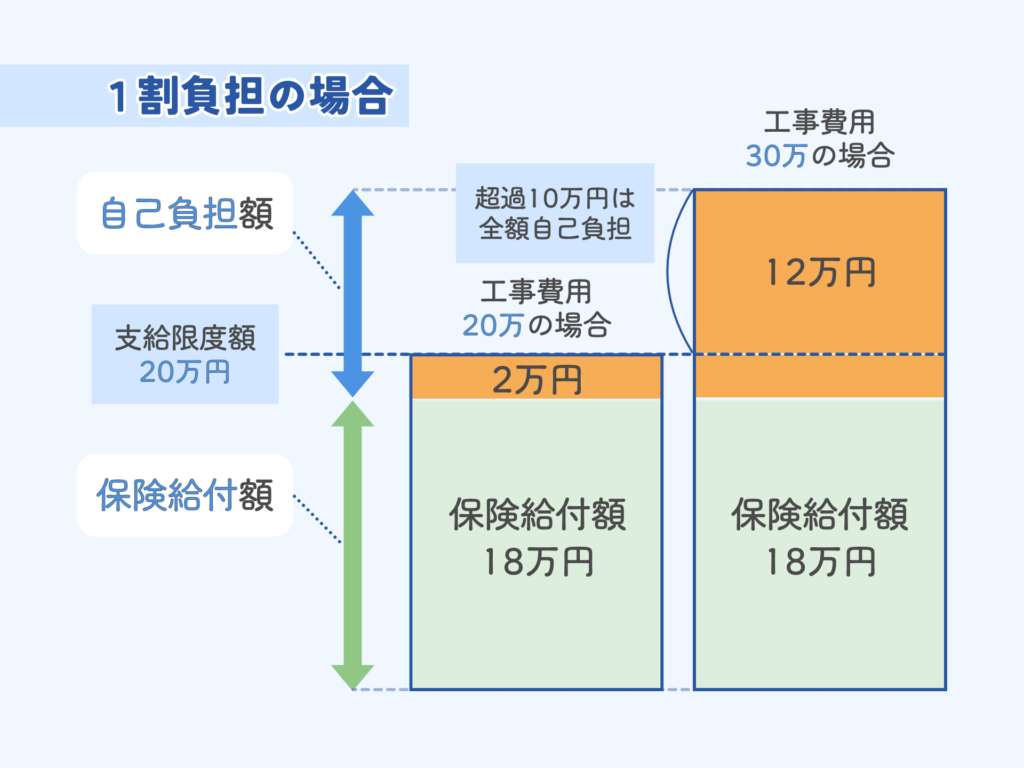 | 工事費用 | 自己負担額 (1割) | 介護保険からの支給 (9割) |