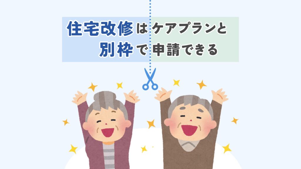 住宅改修費20万円は「生涯で使える別枠」として、毎月のケアプラン予算(デイサービスや訪問介護の限度額)とは完全に分かれています。ホームヘルパーや福祉用具レンタルなどで介護保険の上限額ギリギリまで使っていても、住宅改修は別枠で申請できるので安心してください。