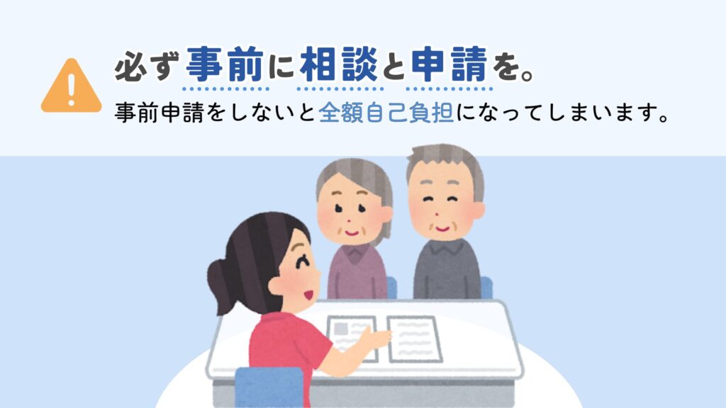 事前に申請せず工事をしてしまうと、全額自己負担になってしまいますので、そうならないために次のステップを参考にしてみてください。