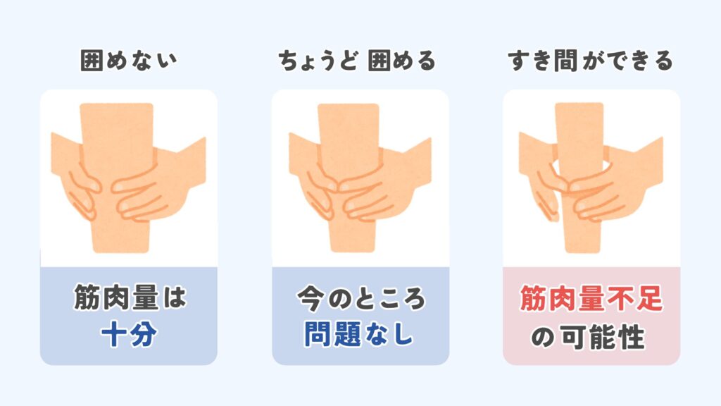 筋肉量の低下(サルコペニア)の目安を、道具なしでチェックすることができます。